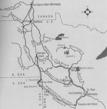As oxcarts began crossing the area while transporting goods between St. Paul, Minnesota to the south, and the Selkirk or Red River Colony (present day Winnipeg, Manitoba, Canada) to the north, the "Old Crossing" of the Red Lake River near Huot, Minnesota, became a place of historical importance.
