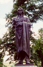 DIRECTIONS: Just before you leave the park is a statue of a Chippewa Indian, on your left. The Old Crossing Treaty memorial, a bronze life-size figure of a Chippewa Indian holding a peace pipe, was erected in 1932 by the U.S. government to commemorate the signing of a peace treaty with the Chippewa Indians in 1863. Representing the U.S. government was Alexander Ramsey, Minnesota's first Territorial Governor, who came from St. Paul escorted by a small detachment of U.S. soldiers. When Ramsey reached the Old Crossing, the Red Lake band of Chippewa were already there with their chiefs Mons-o-Mo, May-dwa-gun-on-ind, Little Rock, Broken Arm, and Leading Feather. Two days later the Pembina band arrived with Red Bear of Pembina and Little Chief of Turtle Mountain as their leaders. |
